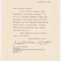 - Brief typescript letter from Archer Huntington to President Flowers