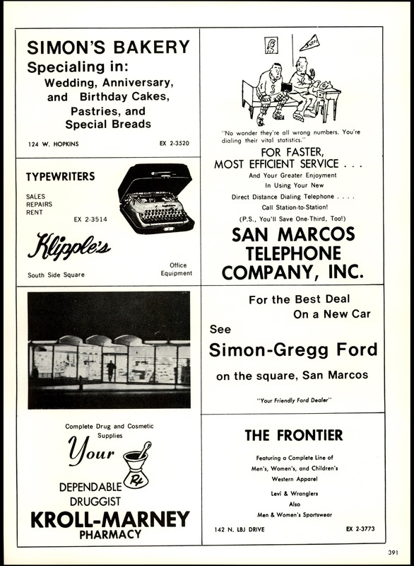 - This yearbook is presented for research and educational purposes only, and may not be distributed or re-published without permission from the University Archives, Texas State University.