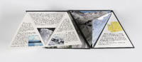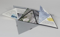 Library's copy 1 (Special Collect): No. 10 of 20 copies. Purchased. In container with lift-out tray.;" A book in the shape of a tetrahedron is pretty close to the general shape of a volcano. Primeval could be showcasing the earth millions of years ago, but is actually showing the current landscape. With a brief description of what happened in the massive 1980 eruption of Mt. St. Helens and overhead photos of the newly reformed landscape, in the aftermath of an earth changing event. Primeval unfolds to 4 panels, 3 foldouts, lots of photos, text about the eruption of Mt St Helens, a colophon, and a sampling of real ash from the volcano, bound with wire edge binding. The book is 5.5 x 6 x 6 . Comes with a tetrahedron case. Edition of 20 --From publisher's web site.";"Deluxe, gray case has black bands in center of each side. Title print on each band. Case material is mildly abrasive.";"Includes color illustrations, descriptive and historical text, a capsule of ash from the eruption, and a description of publication production information."