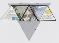 1 tetrahedron, 1 capsule of ash : color illustrations, 1 color map ; 15 x 15 x 15 cm + 1 folding tetrahedron case with stabilizing black cap.